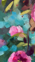 This unique sized oil on gallery wrapped painting would be suitable for narrow walls