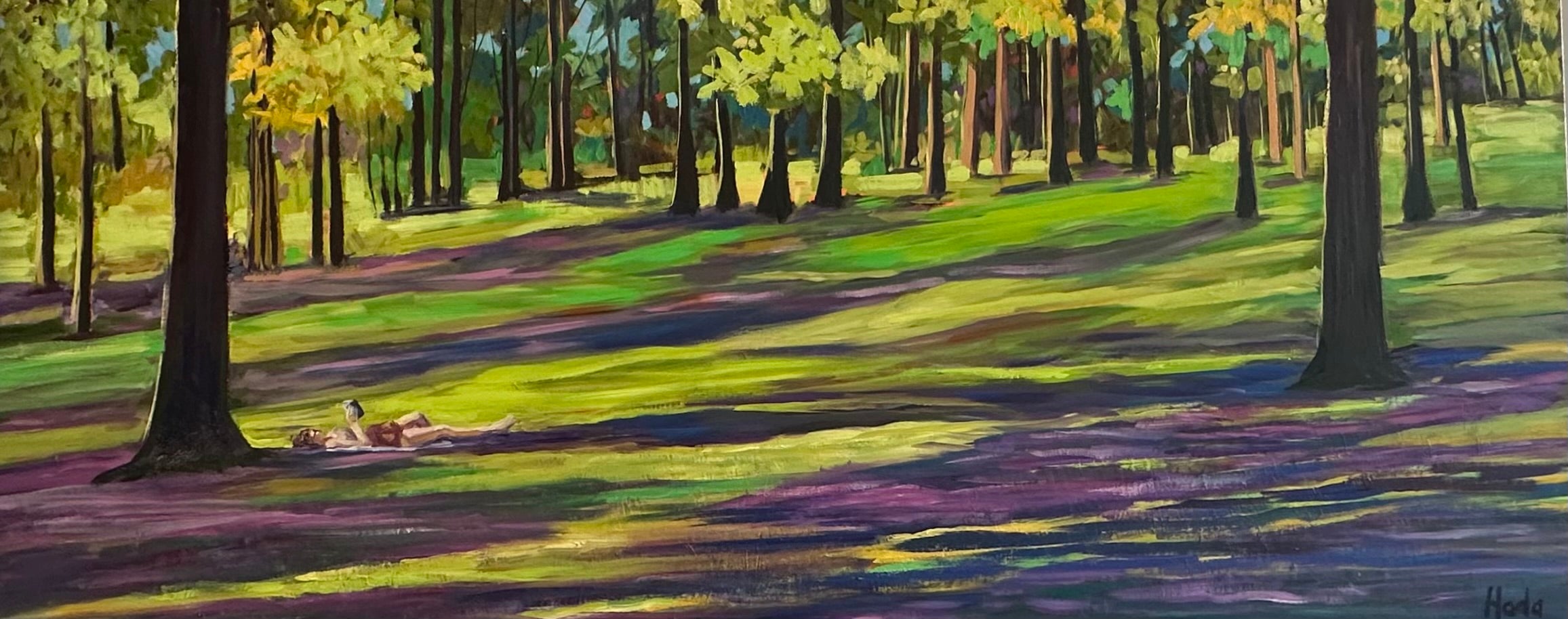 A visually inviting painting that draws you in. The scene is peaceful and uplifting. The colors are harmonious and provide visual interest! This oil on canvas painting is ready to hang with the sides painted black and D-rings in the back