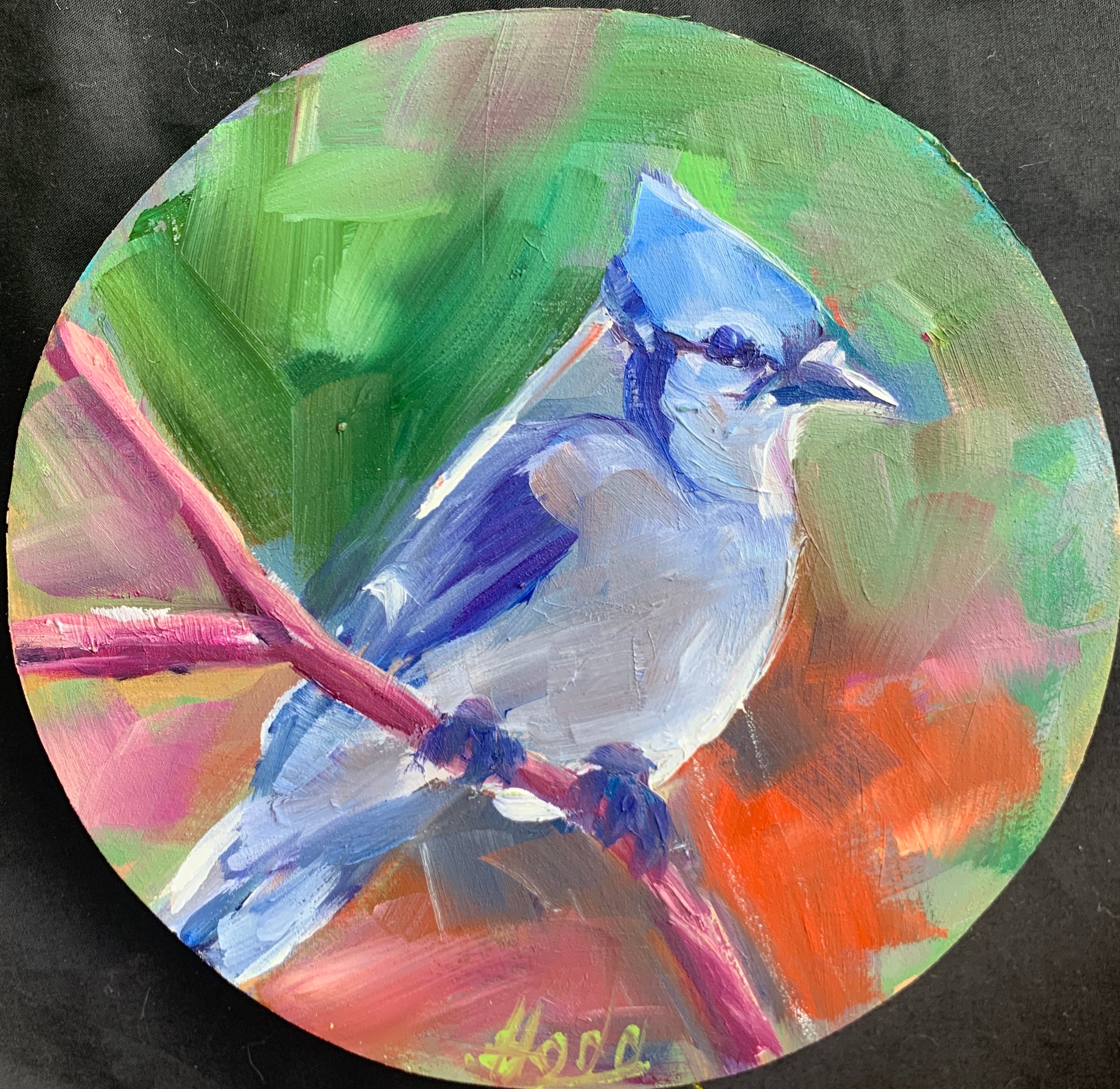 Oil on 8”round wood panel