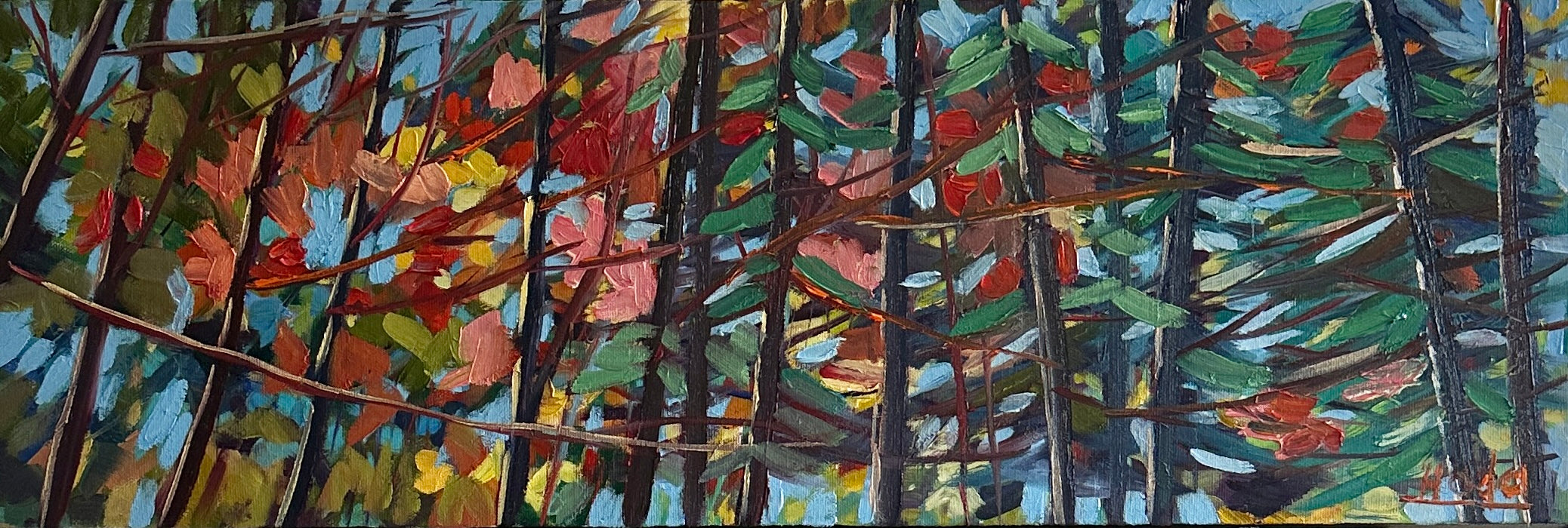 “Together We Stand Strong” reflects the quiet power I see in the forest. The trees lean into one another, sharing nourishment through their unseen network and offering companionship in their collective presence. With my brush, I sought to capture that sense of unity—how their strength is born from connection, support, and the beauty of standing together.