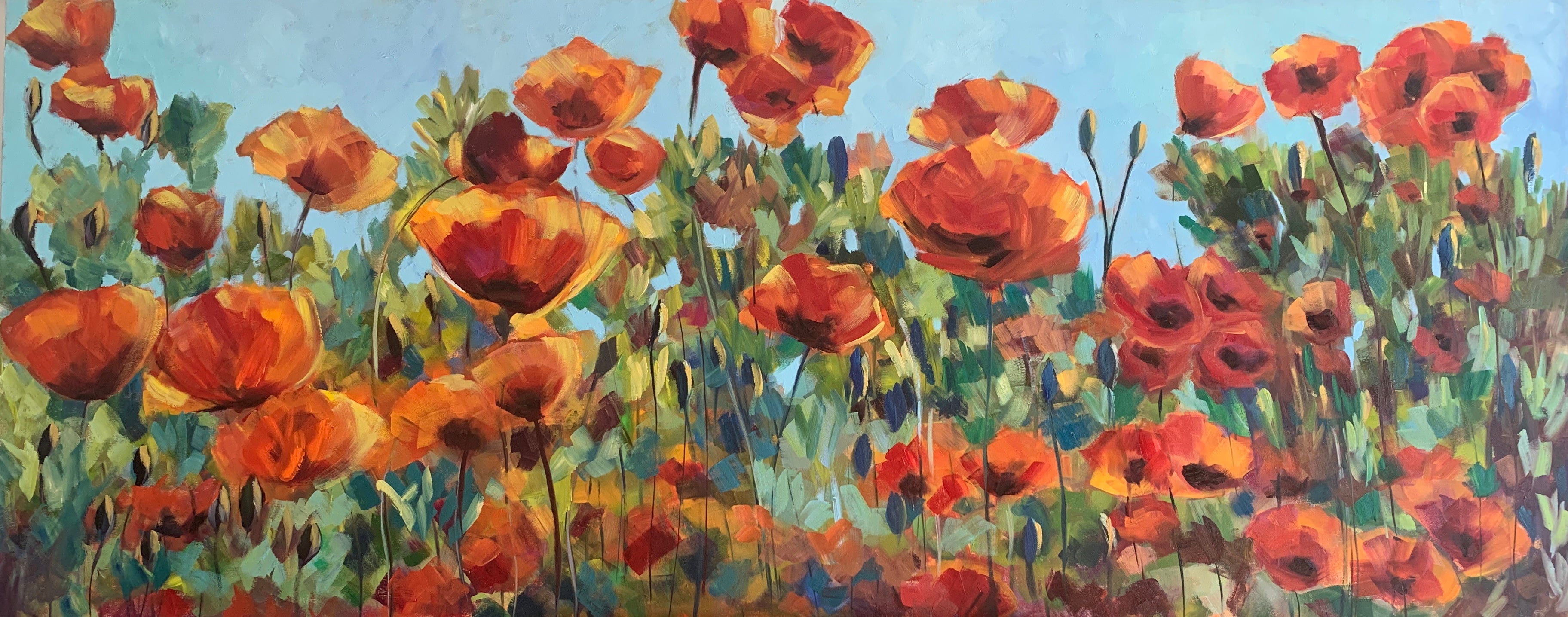 In this collection you would be able to see paintings that have recently sold. If you love what you see, I would be happy to create a similar painting in the size you desire using the same theme and/or palette.