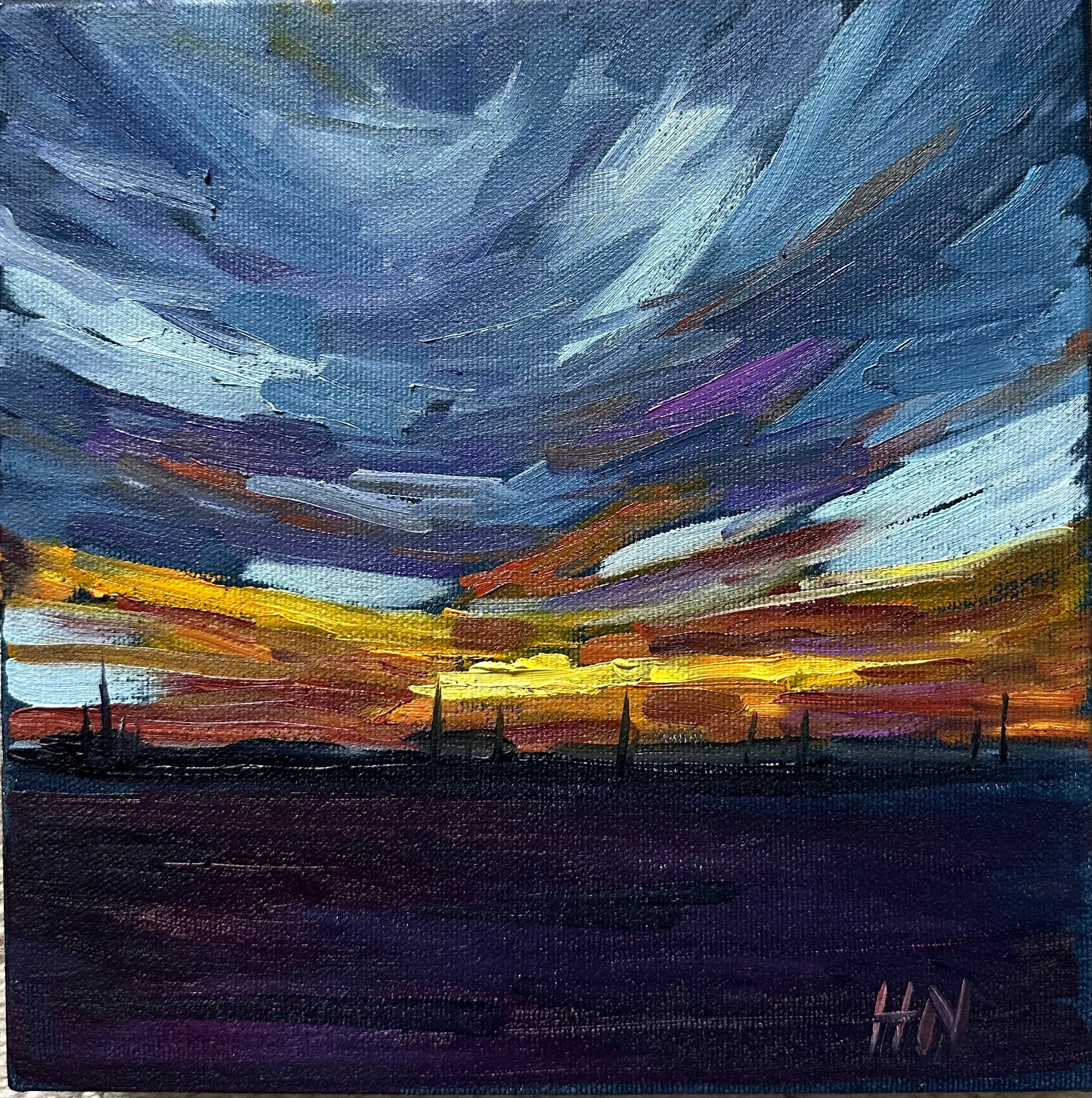 A small oil on canvas sunset painting