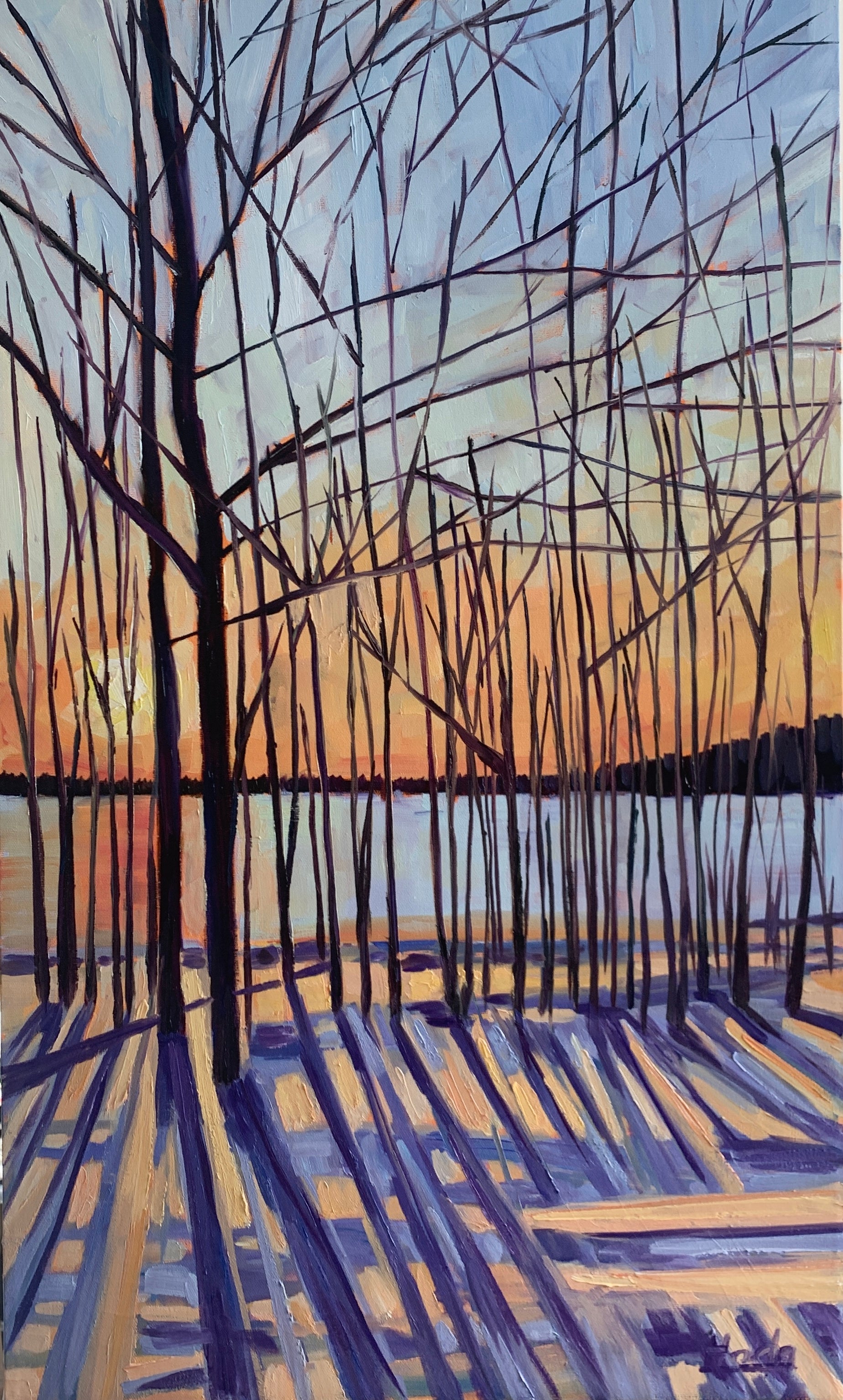 This beautiful sunset painting is painted in oil on gallery wrapped canvas