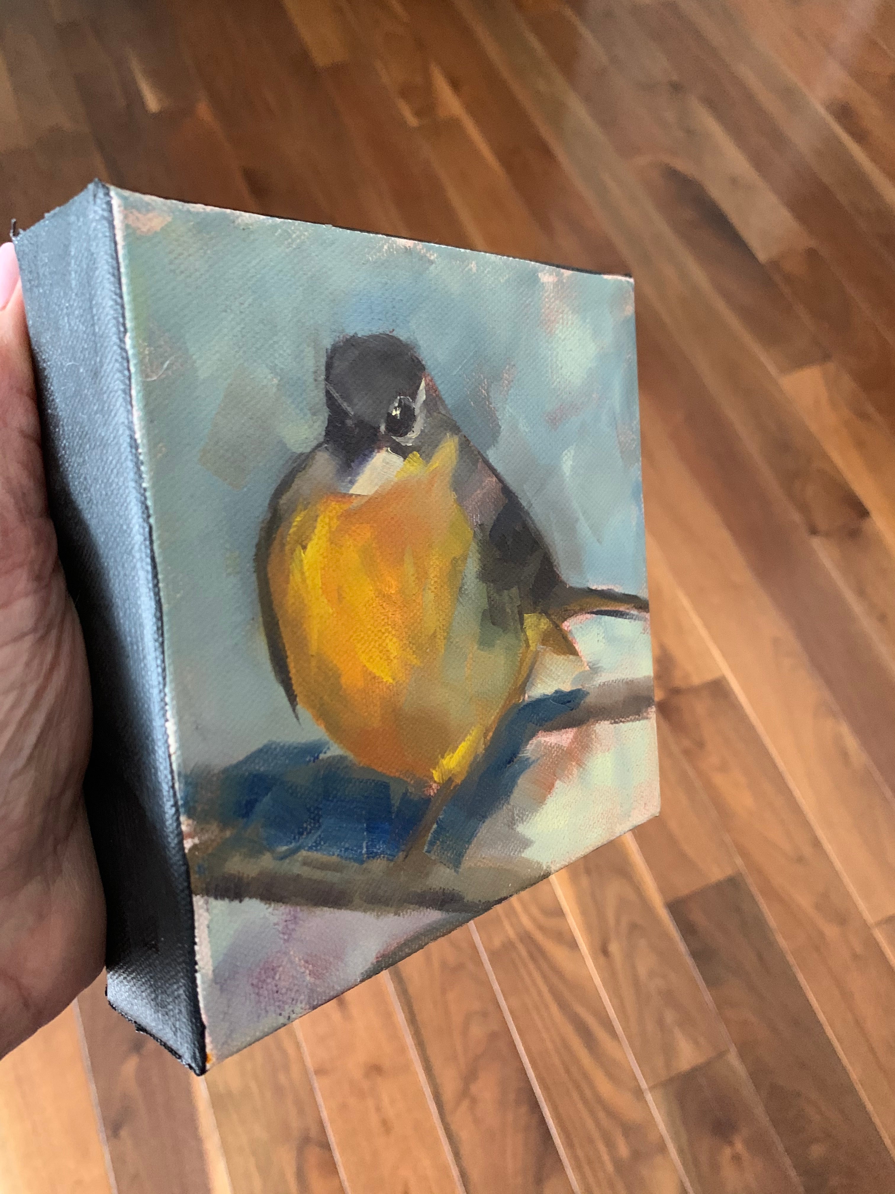 This small fun painting of this beautiful robin can be combined with other small paintings to form a collection on your wall.