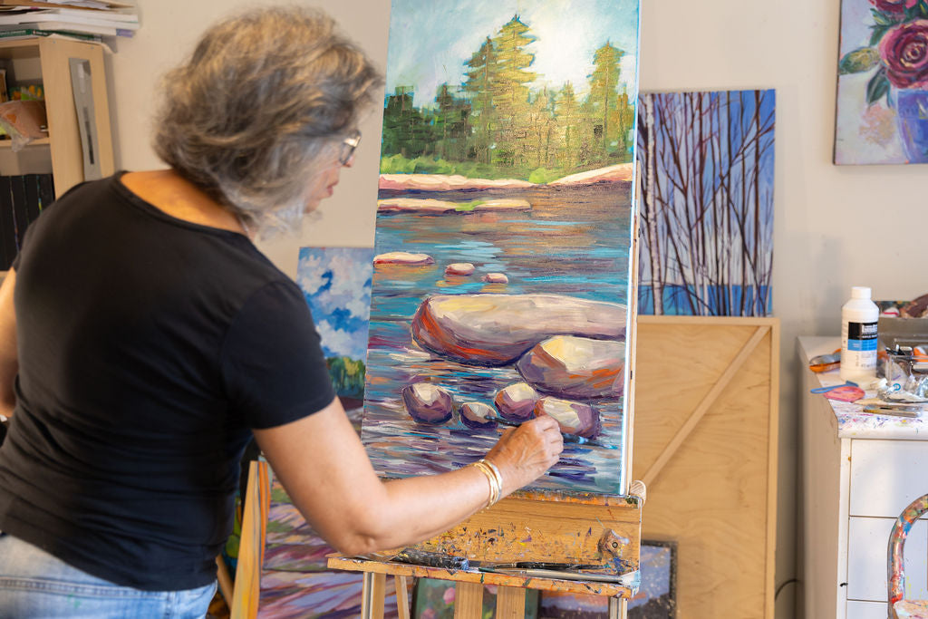 2- You reach out to me to explore the option of commissioning me to create a piece specifically for you. You would share with me the one or more paintings that grabbed your attention and we will discuss size, placement in your home or cottage, your color scheme and what you liked or disliked about the pieces.
