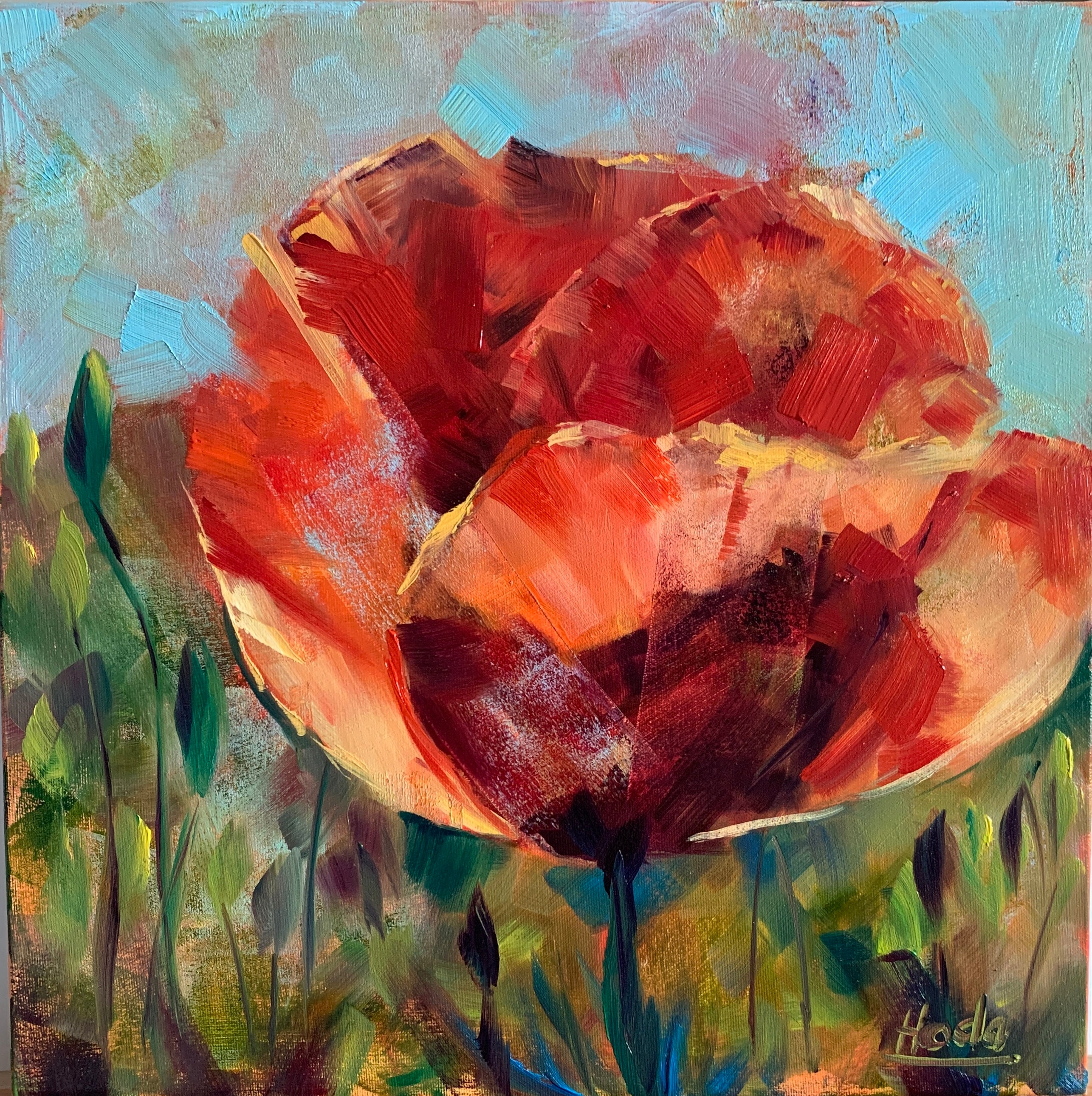 Nothing says Spring like the beautiful colors of tulips and poppies showing up in gardens and backyards. This oil painting celebrates the first signs of spring. It would brighten your home or cottage with its bright, joyful colors.